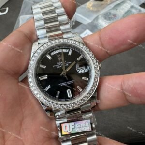 Rolex Day-Date M228349RBR-0003 1:1 Replica Moissanite Bezel Black Dial 40MM 3255 Movement Presidential Bracelet Super Clone Watch
