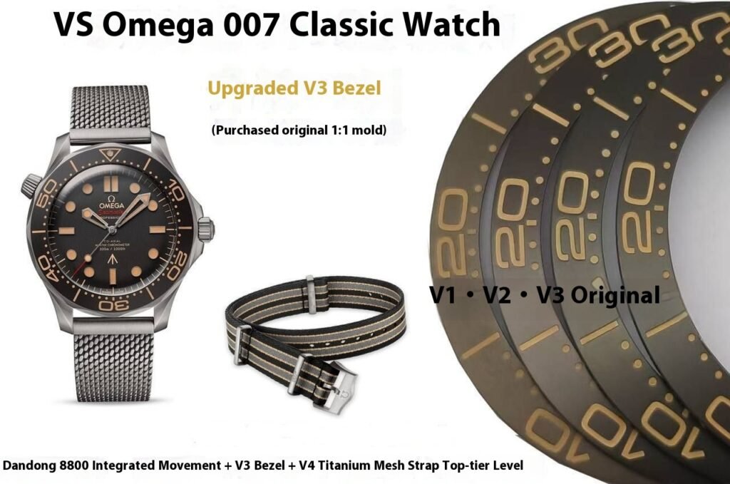 Discover the upgraded OMEGA Seamaster 007 Super Clone, now featuring the latest V3 aluminum bezel and V4 titanium mesh bracelet.